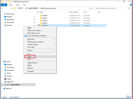 Kopieren Sie in Windows Explorer die Dateien und Ordner, die Sie wiederherstellen möchten, und fügen Sie sie an einen beliebigen Speicherort auf dem Server ein.