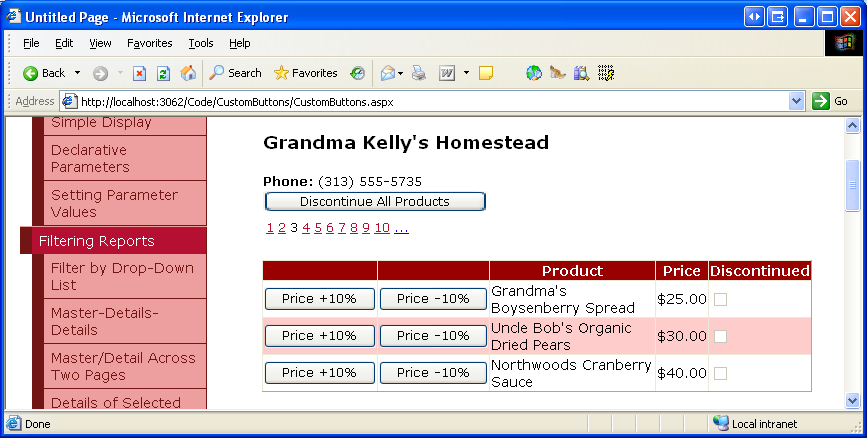 Abbildung 20: Die GridView umfasst Preis +10 % und Preis -10 % Schaltflächen (Klicken Sie, um das Bild in voller Größe anzuzeigen)