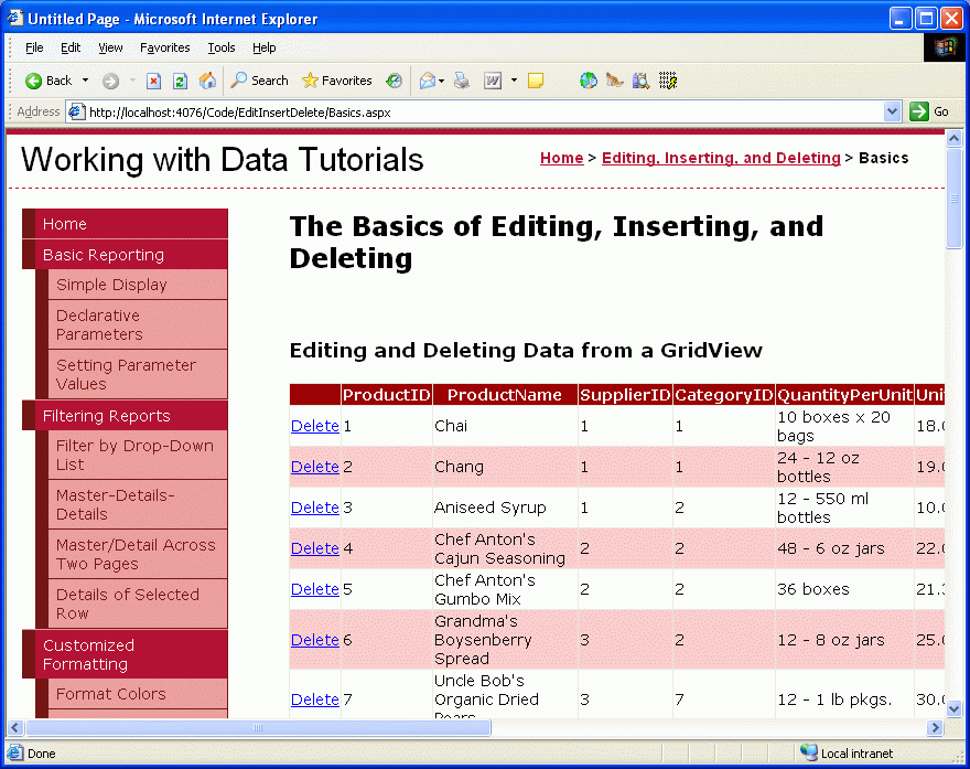 Default.aspxBasics.aspxDataModificationEvents.aspxErrorHandling.aspxUIValidation.aspxCustomizedUI.aspxOptimisticConcurrency.aspxConfirmationOnDelete.aspxUserLevelAccess.aspx
