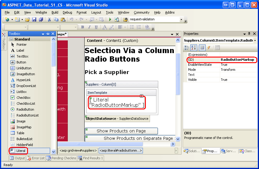 Verwenden eines Literal-Steuerelements zum Einfügen des Radiobutton-Markups
