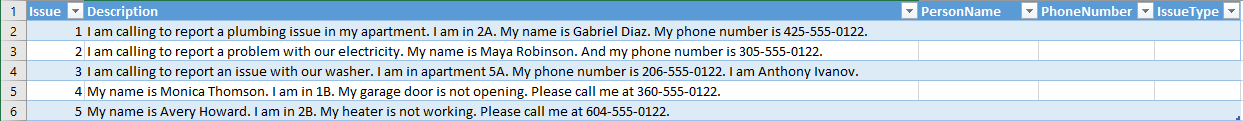 - Ein Arbeitsblatt mit Mieterproblemen. Beispieldaten für dieses Tutorial sind auf GitHub verfügbar.