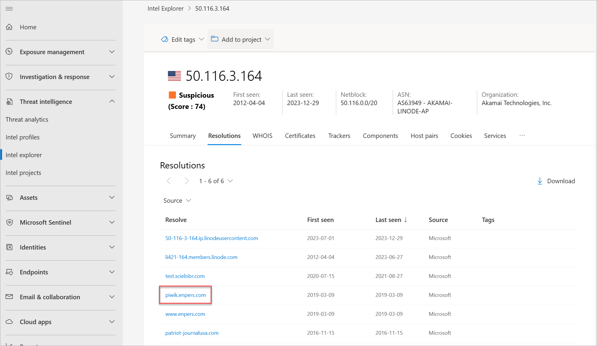 Tutorial: Überprüfung von Domänenauflösungen für Sicherheitsrisikointelligenz.
