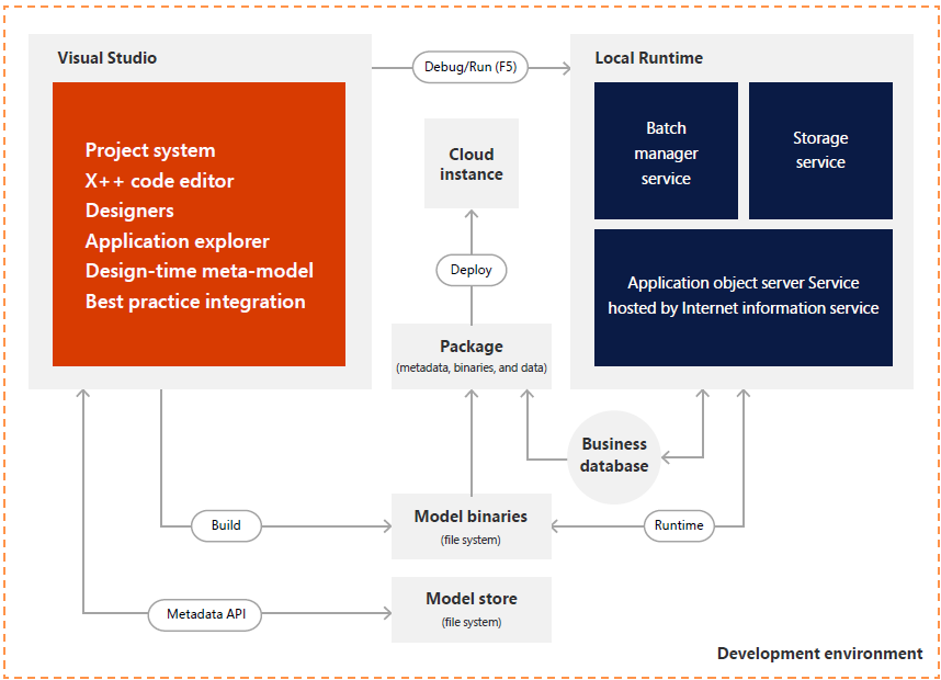 | Business logic | X++ Editor in Visual Studio. | Adjust compiler settings to alert about best practices, and code with the goal of zero deviations. Use code patterns and frameworks. Be a good citizen developer. Write clean, easily readable code. Run the CAR report and use compatibility checker.Unit to test your code. |
