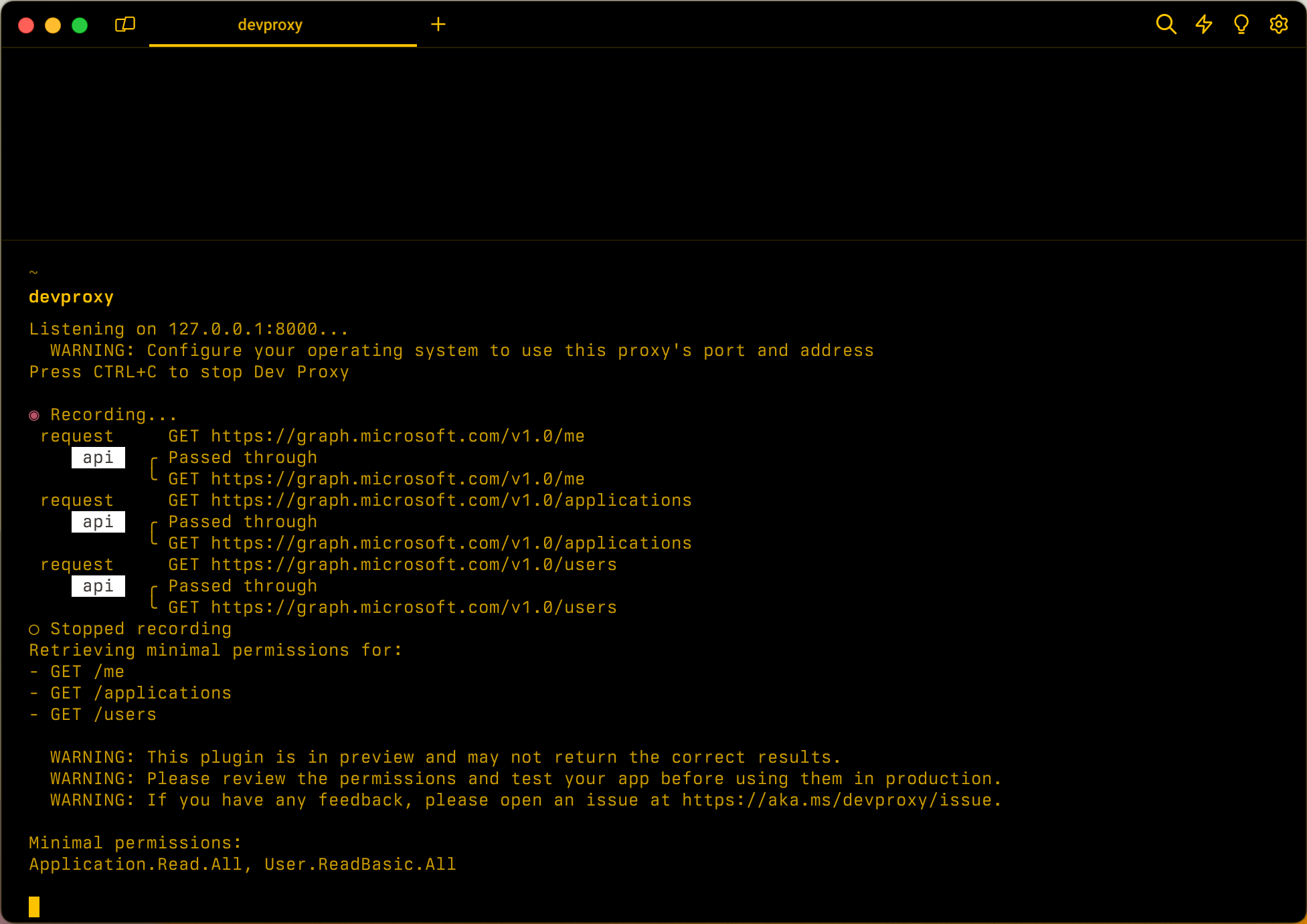 Gibt eine Liste der minimalen Berechtigungen zurück, die für Microsoft Graph-Anforderungen erforderlich sind, die von einem Proxy aufgezeichnet wurden.