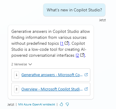 Weitere Informationen zu dieser speziellen Funktion erhalten Sie in der Microsoft-Dokumentation zu generativen Antworten: