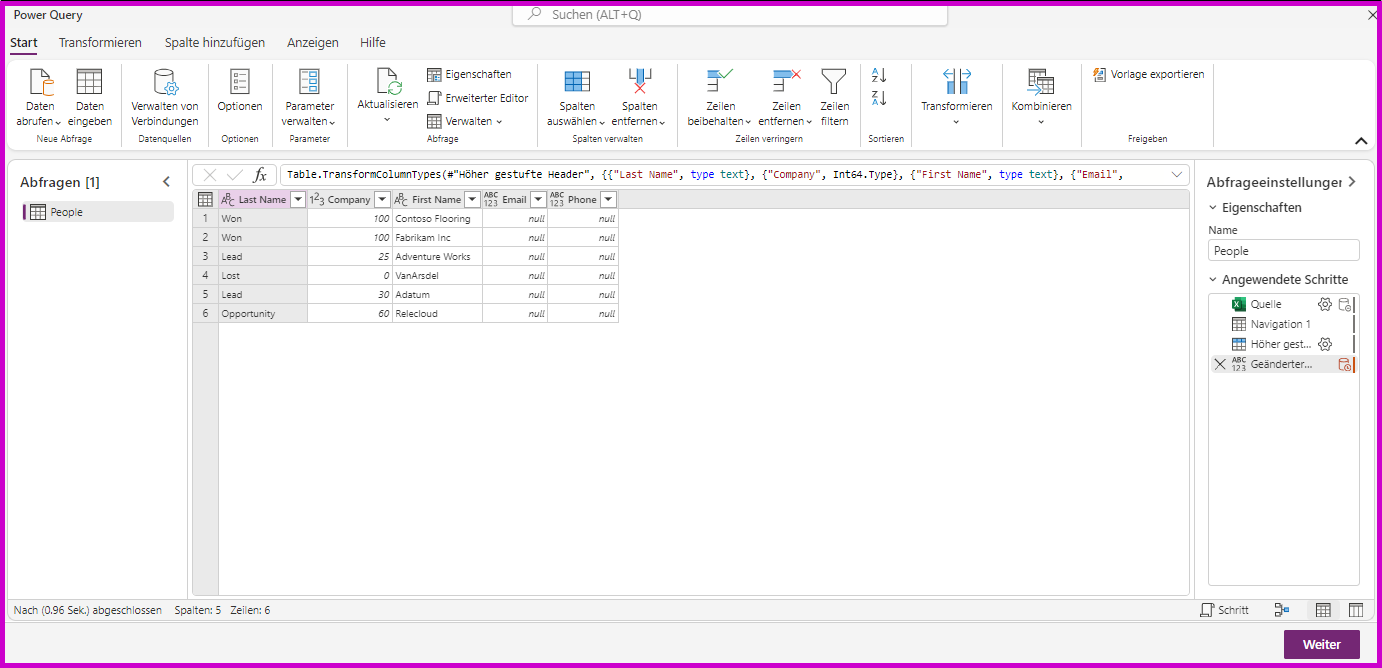 Das Importieren von Daten in Power Apps Maker Portal verwendet PowerQuery, um die Extraktions-, Transformations‑ und Ladeverarbeitung durchzuführen.