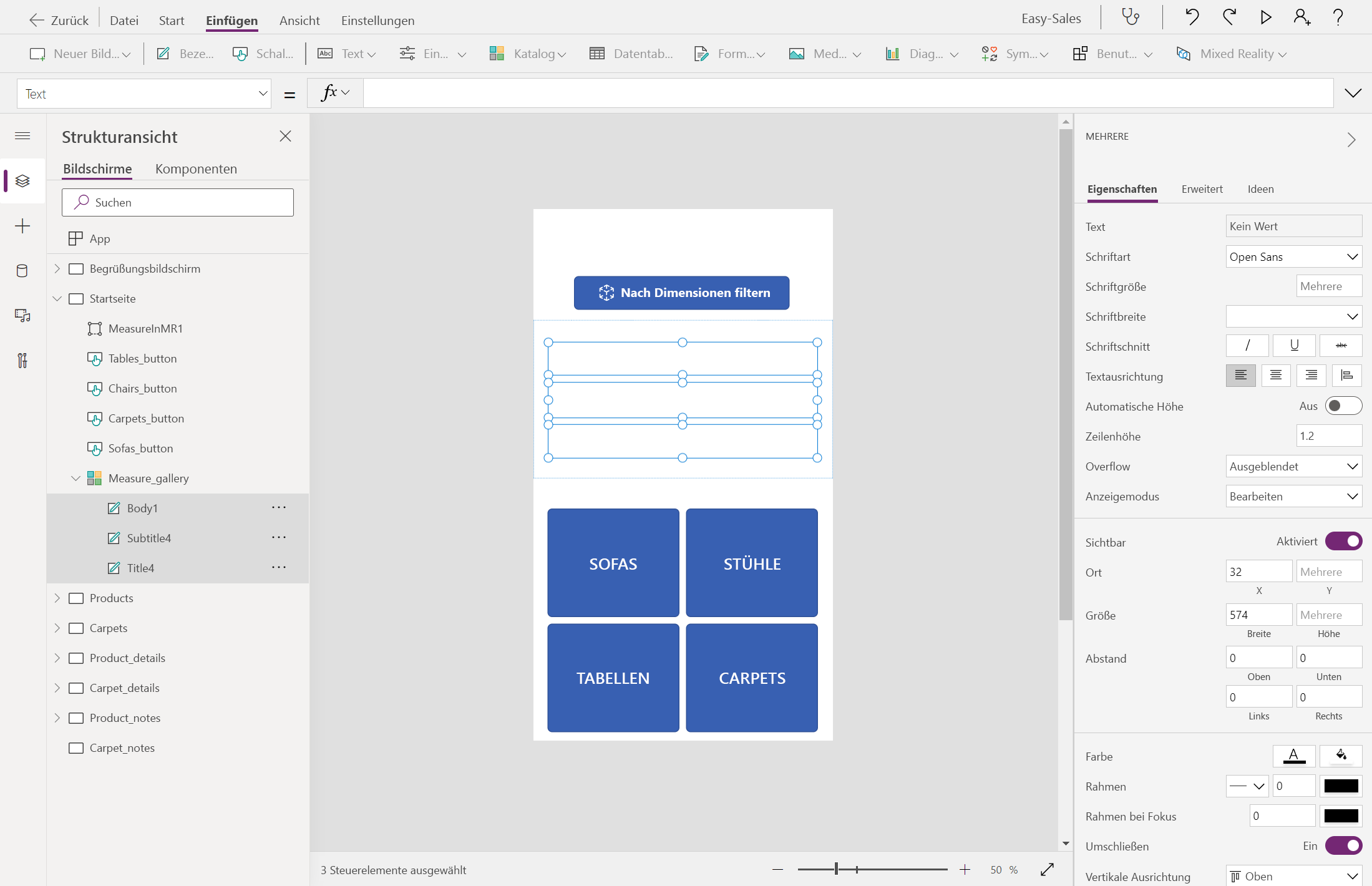 Übung: „In MR messen“ und Filtern in Power Apps