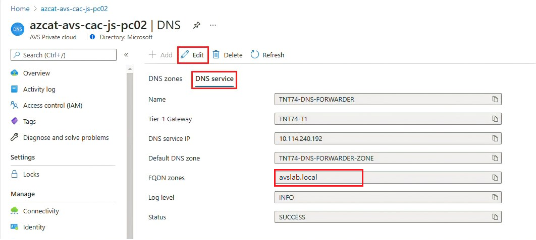 Your Azure VMware Solution private cloud should now properly resolve your on-premises Windows Server Active Directory domain name.