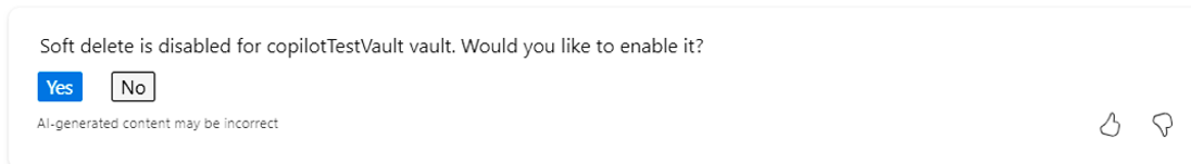 Checks for the Soft Delete state. If enabled, Copilot provides the option to disable the security feature.