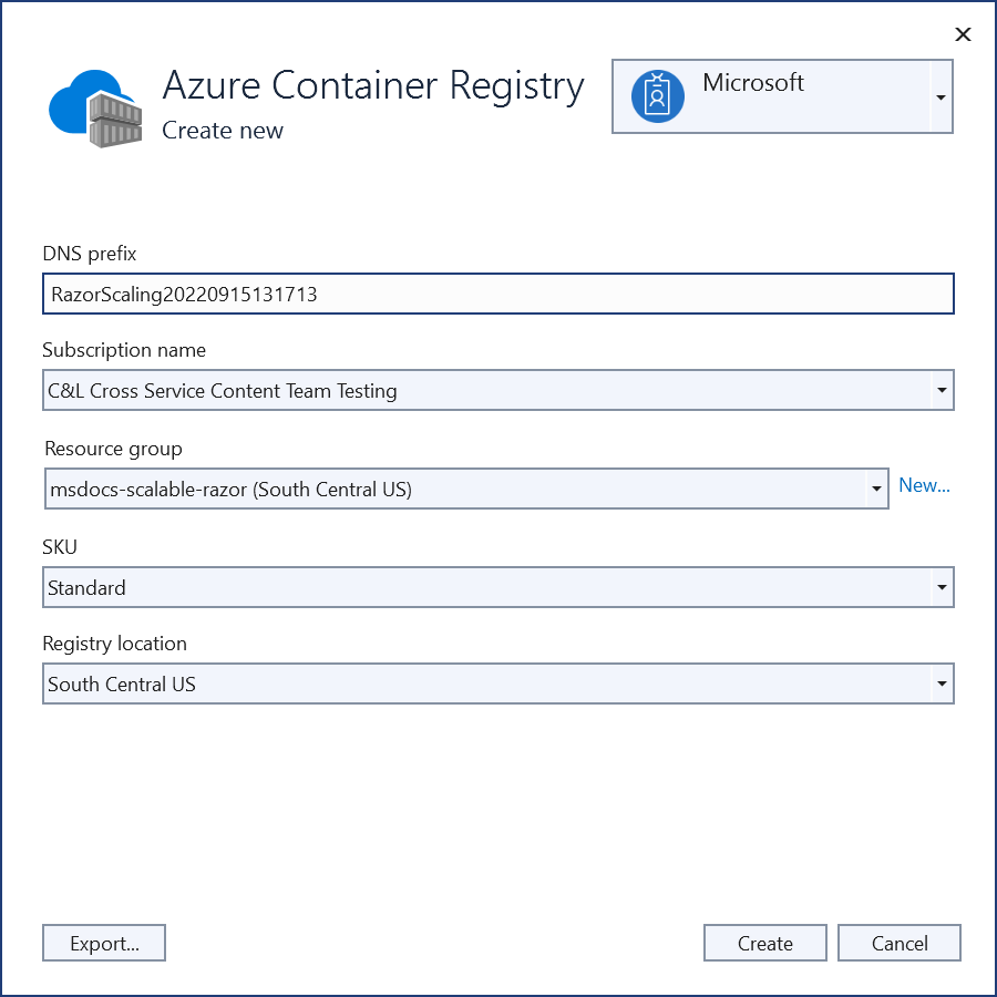 • Resource Group: Select the msdocs-scalable-razor resource group you created previously.