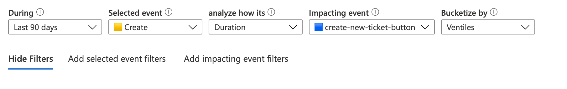 To begin answering questions with the Impact workbook, choose an initial page view, custom event, or request.