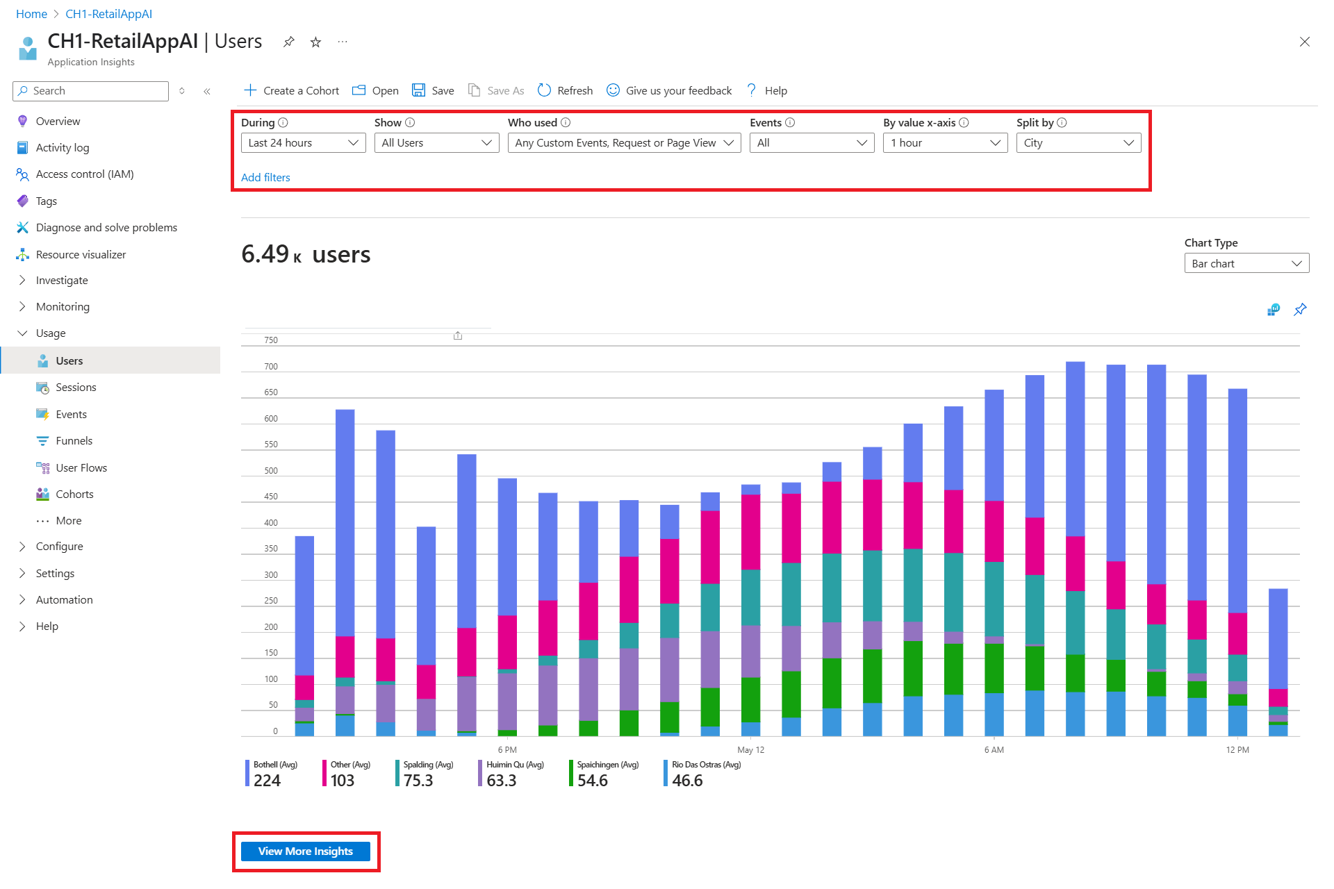Application Insights is a powerful observability tool that collects telemetry data to show how users interact with your application. This includes information about which features are most popular, if users achieve their goals, where they drop off, and whether they return later.
