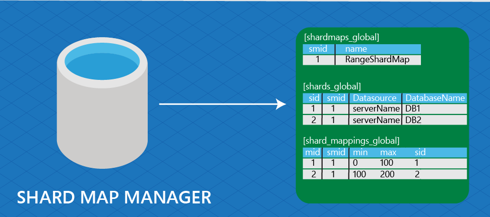 Shard map manager: A management object and data store that contains the shard map(s), shard locations, and mappings for one or more shard sets.