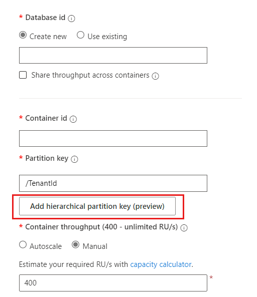 - Using the Data Explorer to create containers with hierarchical partition keys