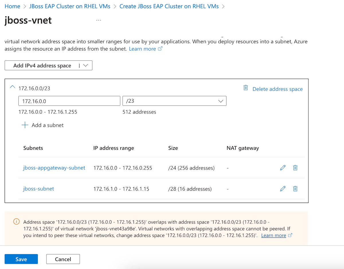 In this section, you create the primary JBoss EAP clusters on Azure VMs using the JBoss EAP Cluster on VMs offer. The secondary cluster is restored from the primary cluster during the failover using Azure Site Recovery later.