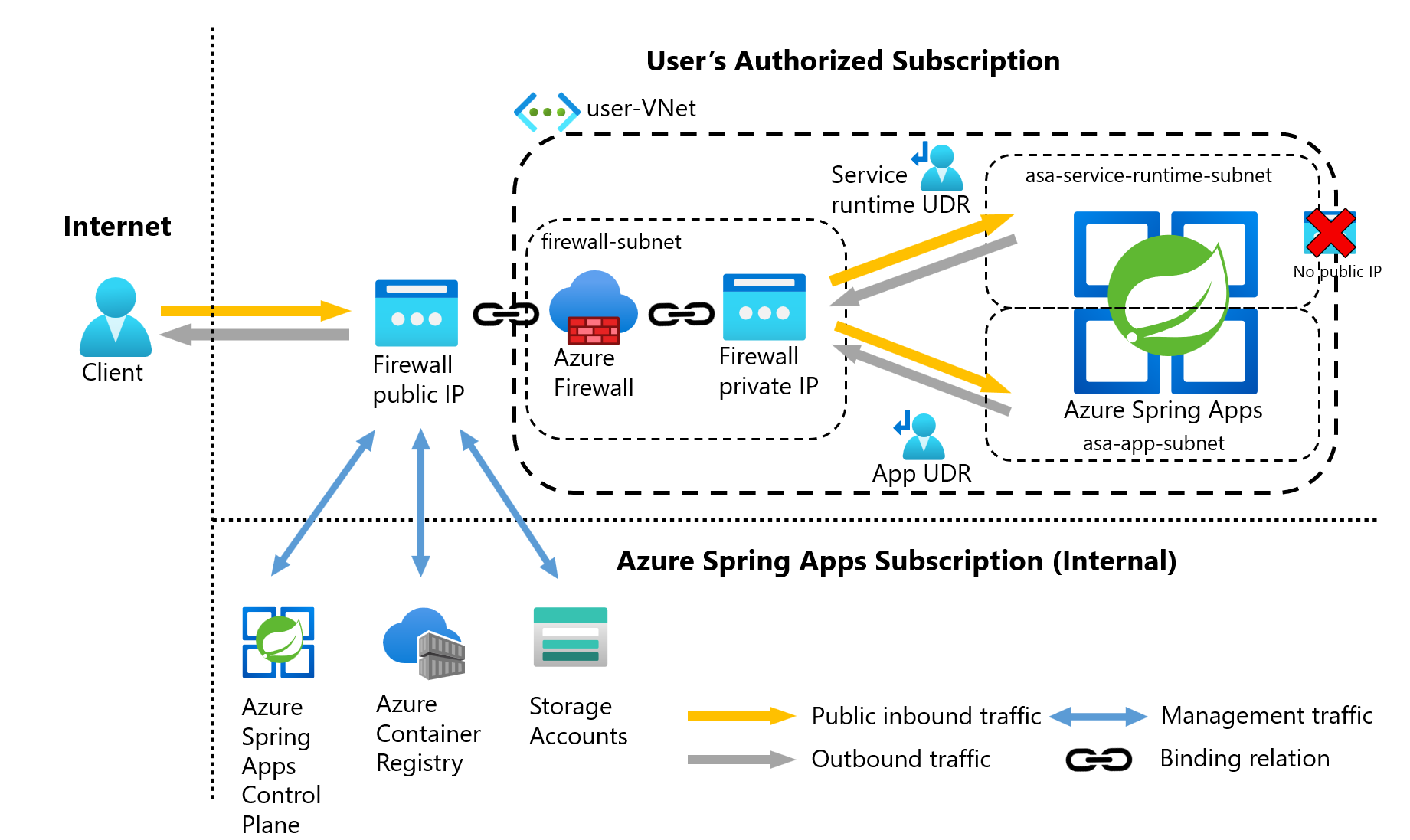 - Azure Spring Apps doesn't automatically generate public IP resources.