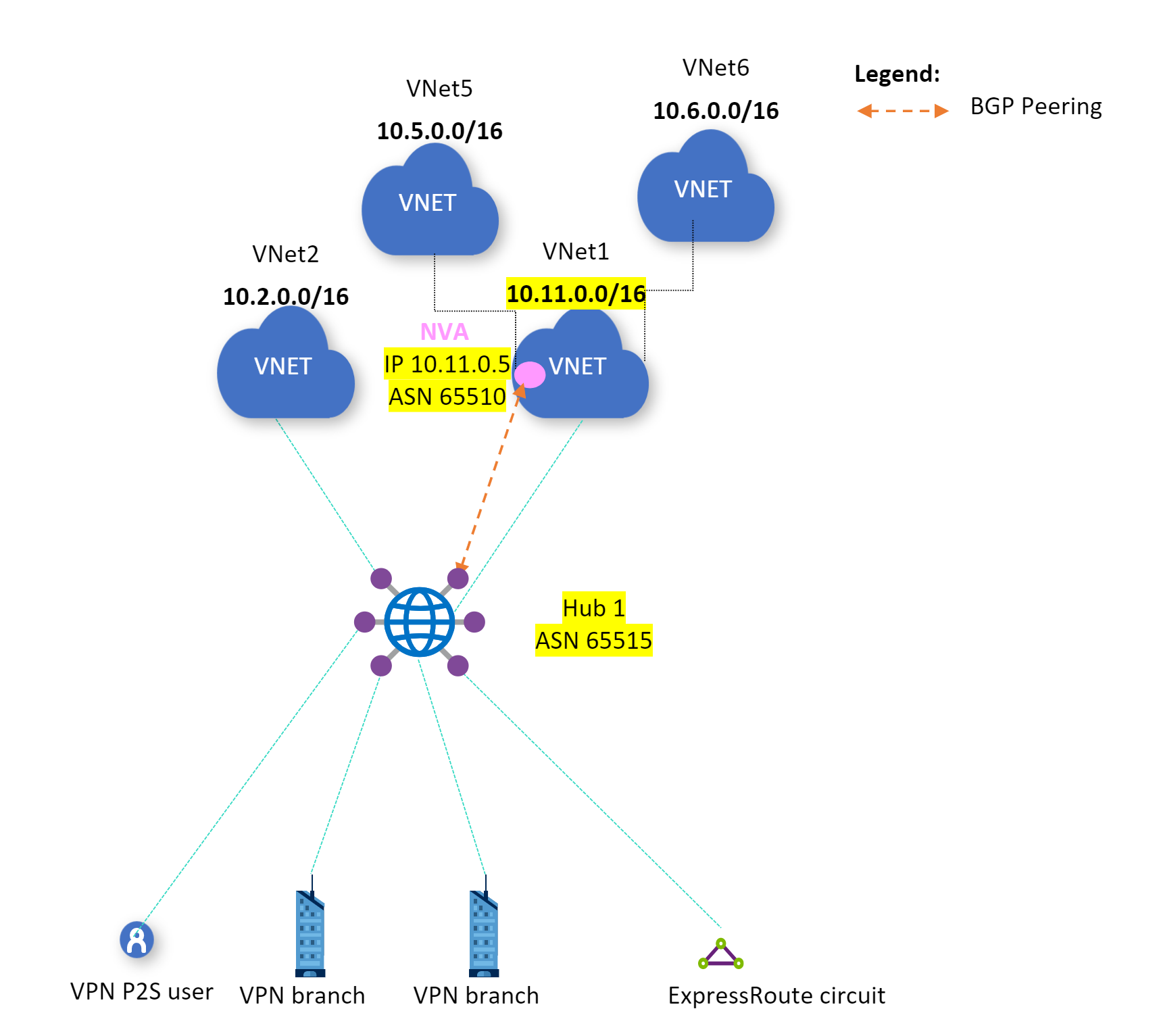 For more information about BGP scenarios, see Scenario: BGP peering with a virtual hub.