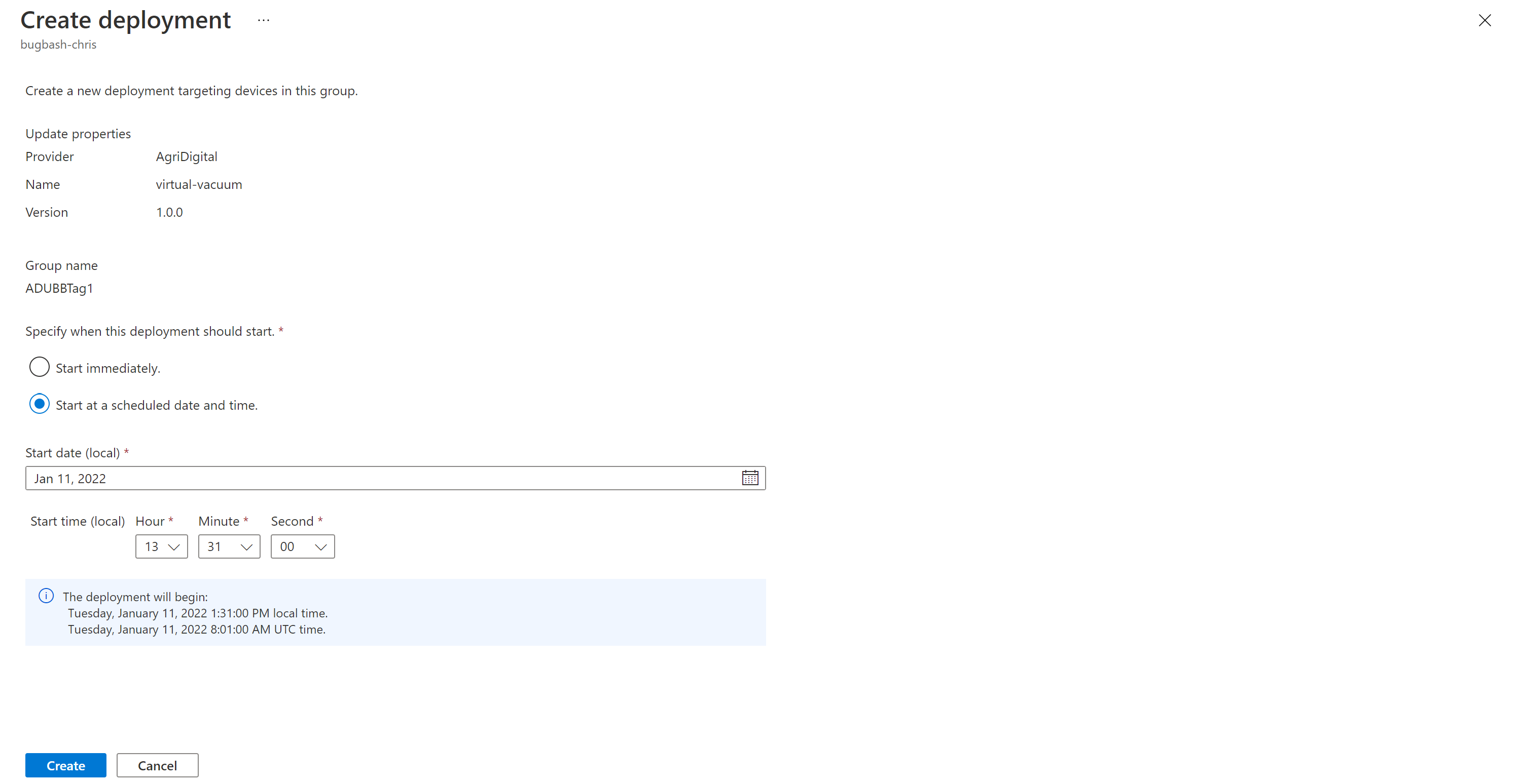 - Schedule your deployment to start immediately or in the future, then select Create.