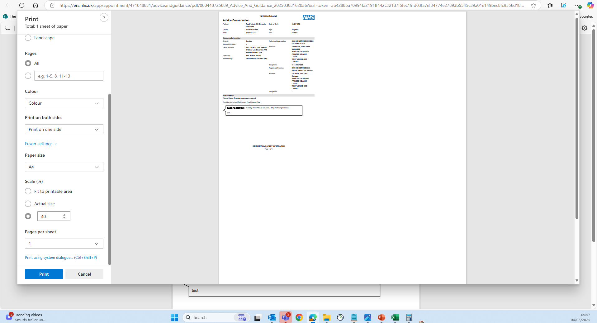 Starting with version 133, Edge introduced updates to its print rendering engine that may affect how content is aligned when scaled below 100%. The behavior you're describing—text aligning to the top-left instead of center—has been noted in certain scenarios, particularly when using custom scale percentages like 85%.