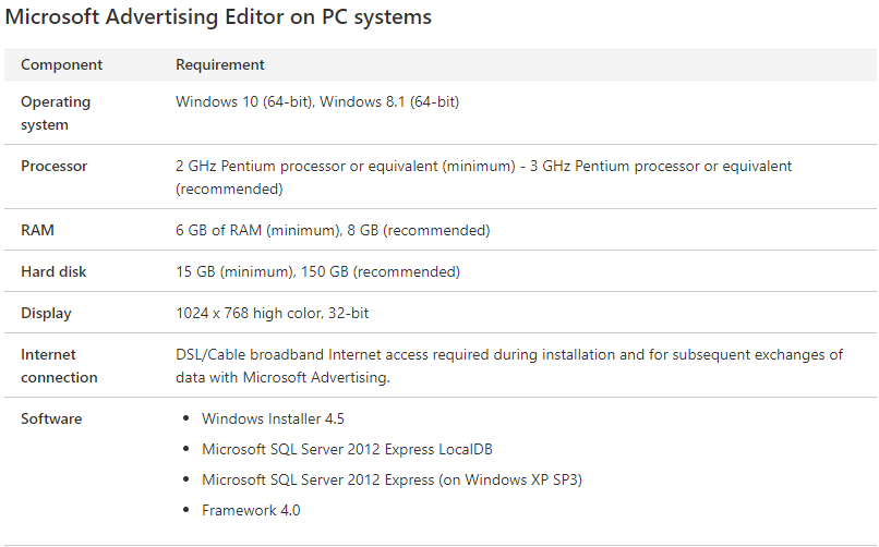 When installing Microsoft Advertising Editor on a fully updated Windows 10, I get the following errors :