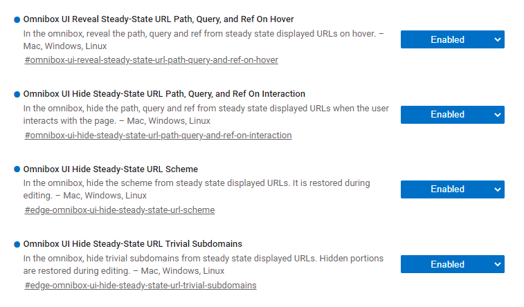 I recently switched from Chrome and I'm really loving the responsiveness along with the neat and clean UI on the new Edge. However, I wish to not have the mentioned elements in the address bar constantly as it really doesn't serve any purpose for me whereas keeping them hidden would make it look cleaner. I have no problems in double clicking on it just to see the complete address.