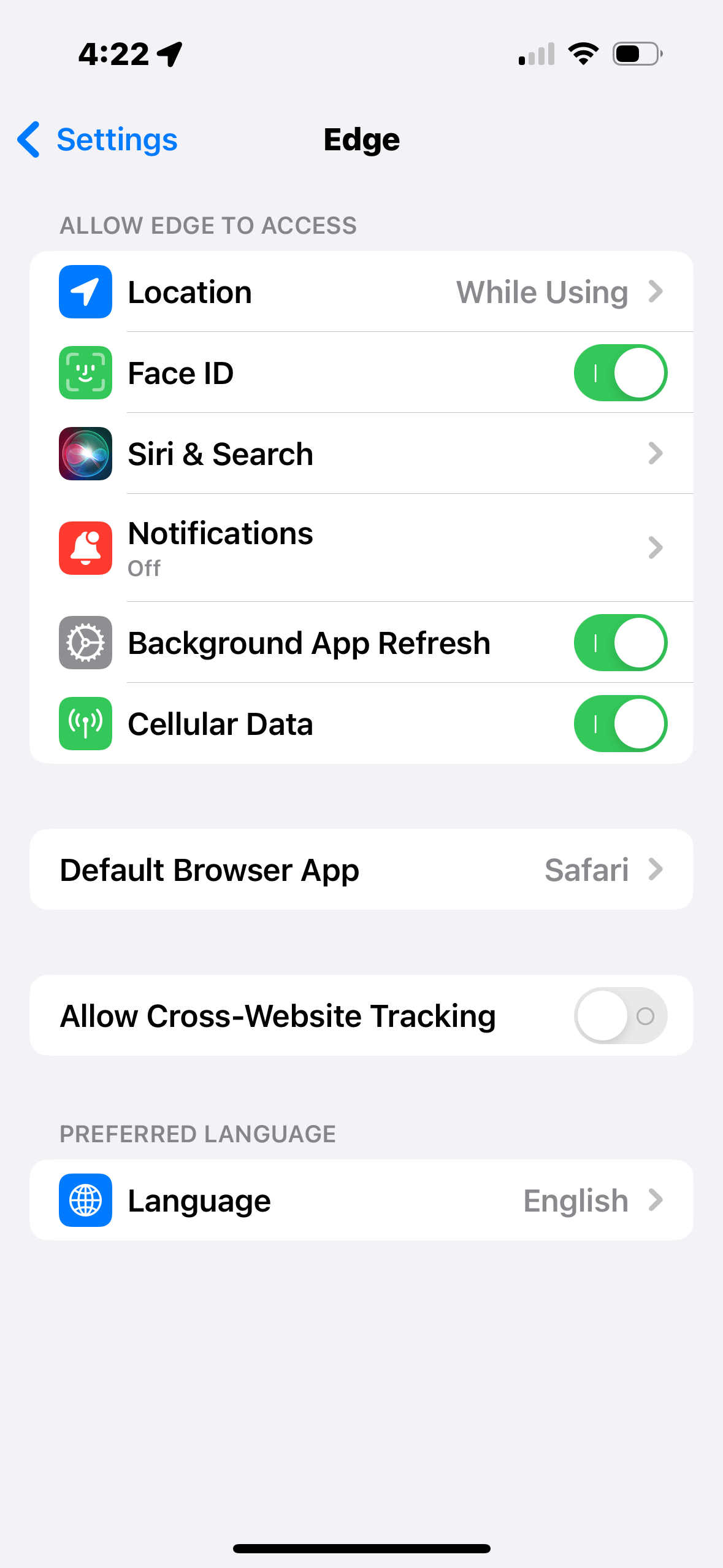 I definitely tried reboot, reinstall, and both the software and firmware are up to date. Just don’t know a proper way to let the app ASK for those access from the iOS system. Not everyone has this issue in my organization, but I really don’t know what is unique in my iPhone 13 that makes the Edge app so shy.