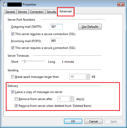 The standard TCP ports for most email servers are Port 25 for SMTP (outgoing) and Port 110 for POP3 (incoming) messages but the image below also shows that I preferred to use the secure SSL/TLS Port 587 for SMTP-S and Port 995 for POP3-S for that email account so that communications between my computer and the Microsoft Outlook.com email server were encrypted. See my 01-Nov-2018 in DIPAKMODHA's Windows Live Mail 2011 Vista Cannot Create an Email for further details.