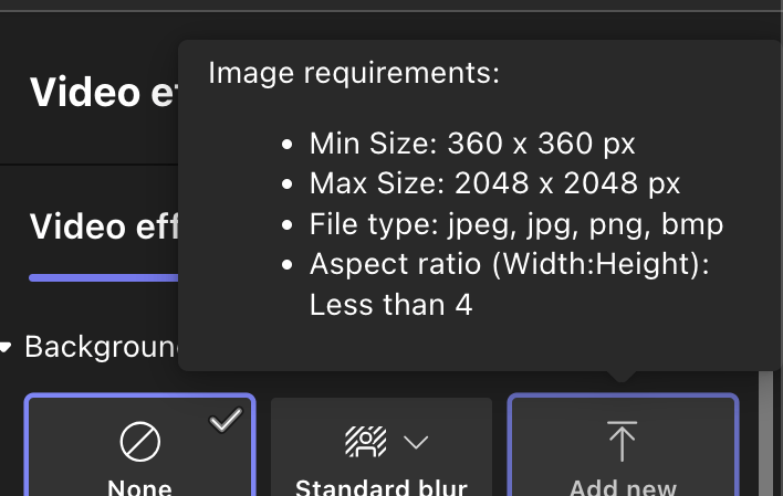 More info: Users may be unable to upload background images larger than 1800x1800 during Microsoft Teams meetings