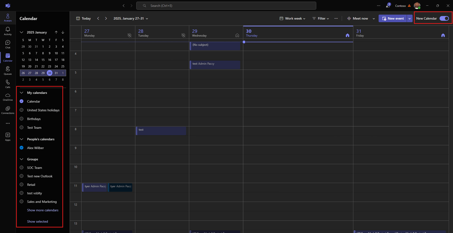 To enable the new calendar, please go to your Teams calendar > and enable new calendar toggle (Top right conner):