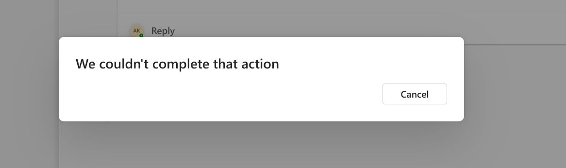 I and anyone else in my company can't create a teams. All of u get a message: This action could not be completed.