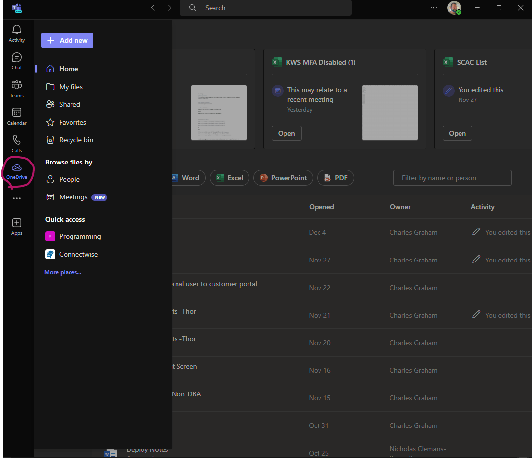 - May I know only OneDrive files in Team have this behavior? What about other files? Such as Word or Excel files?