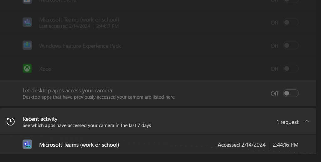 I did not give teams any permission to use my camera at all. When I opened the app, I was not in a call I was simply on the home page and my camera use indicator flashed, I checked my Windows 11 security settings and noticed teams accessed my camera for no reason, and without permission, I feel that this is a gross violation of my privacy and I hope people consider a more secure collaboration software outside the Microsoft suite.