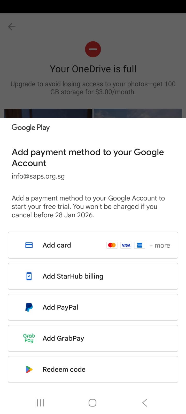 - Once you already switched, return to the OneDrive App and you may try to proceed to the upgrade process again. The transaction will now be billed to the selected personal account.