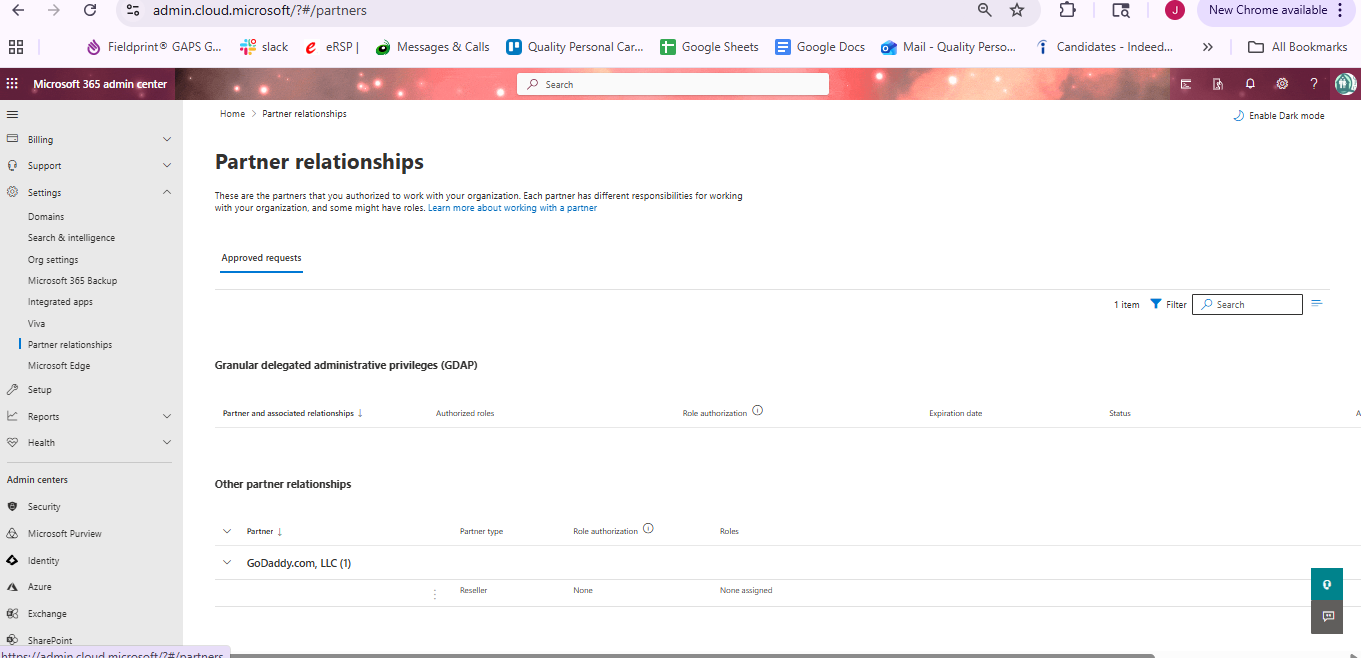 - Remove GoDaddy from Partner relationships in the Microsoft 365 Admin Center.