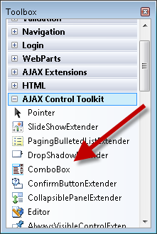 Next, drag the ComboBox control onto the page. You can find the ComboBox control in the Toolbox with the other AJAX Control Toolkit controls and control extenders (see figure1).