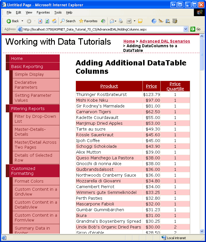 Step 1: Adding aPriceQuartileColumn to theProductsDataTable