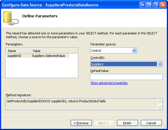 <asp:ObjectDataSource ID="SuppliersProductsDataSource" runat="server"