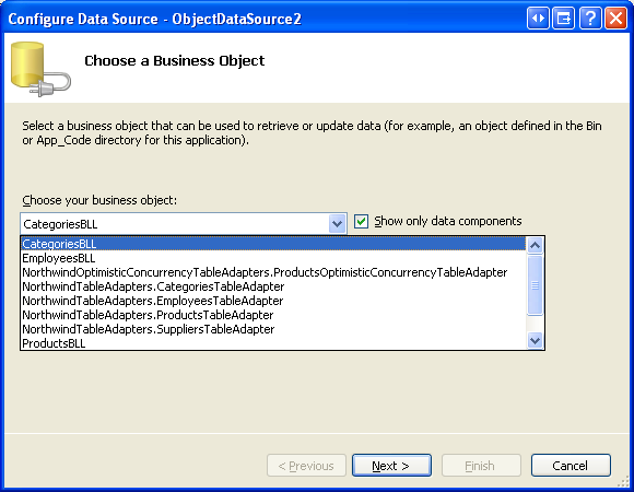 Figure 15: Configure the ObjectDataSource to Use the CategoriesBLL Class (Click to view full-size image)