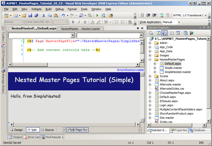 Step 2: Creating a Simple Nested Master Page