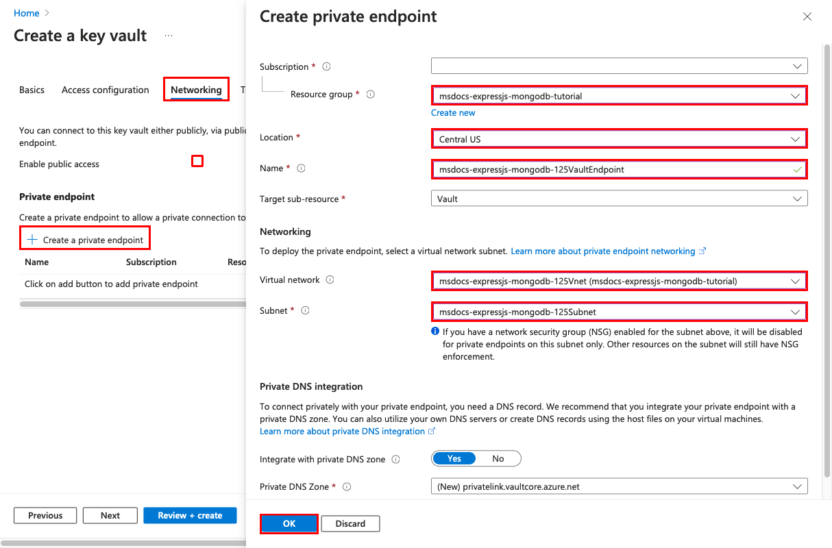 - In Name, type msdocs-expressjs-mongodb-XYZVaultEndpoint.