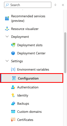 1. In the left menu of the App Service page, select Settings > Environment variables.
