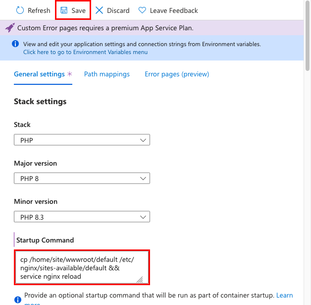 The sample app outputs console log messages in each of its endpoints to demonstrate this capability. By default, Laravel's logging functionality, for example, Log::info(), outputs to a local file. Your LOG_CHANNEL app setting from earlier makes log entries accessible from the App Service log stream.