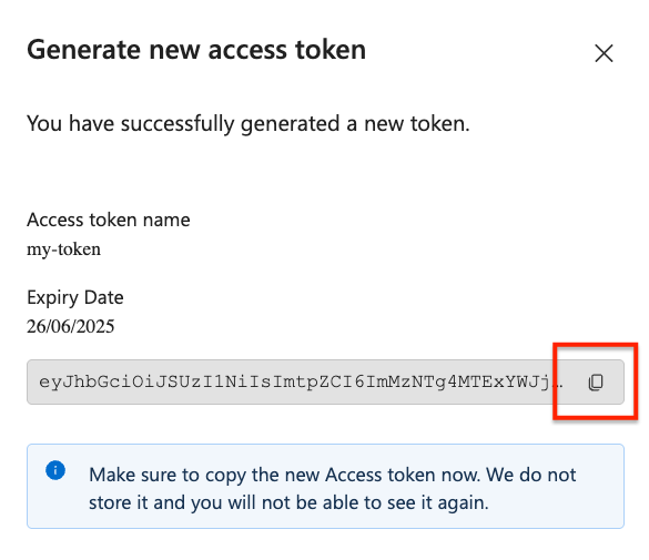 Copy the access token for the workspace.