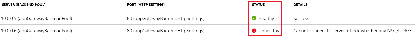 The Application Gateway forwards a request to a server from the backend pool if its status is healthy. If all the servers in a backend pool are unhealthy or unknown, the clients could encounter problems accessing the backend application. Read further to understand the different messages reported by Backend Health, their causes, and their resolution.
