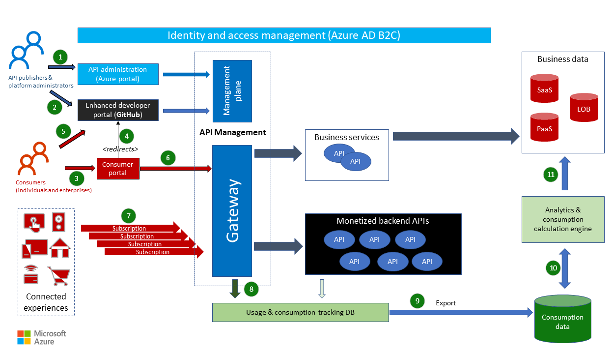 As the publisher of APIs, you need a website that effectively markets your APIs and helps customers to differentiate between offerings. When they've selected APIs, you need to be able to give access only to authenticated users, manage consumption, and deliver accurate invoices for use. This example scenario shows how you can use Azure service and GitHub to create a platform that does all of this and more.