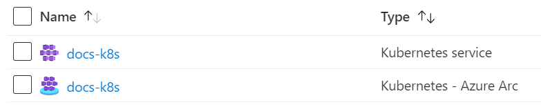 The shadow resource is the resource type Kubernetes - Azure Arc in the image above. The other resource is the Kubernetes service cluster. Both resources have the same name.