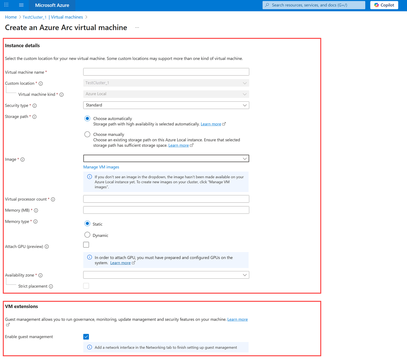 You can now create the Azure Local VM in a specific availability zone with or without strict placement.