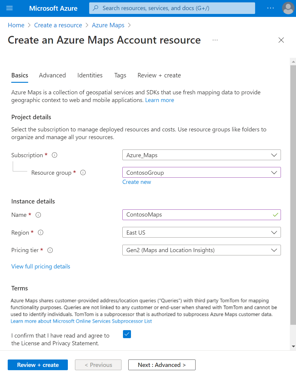 Picking a location for your Azure Maps account that aligns with other resources in your subscription, like managed identities, may help to improve the level of service for control-plane operations.