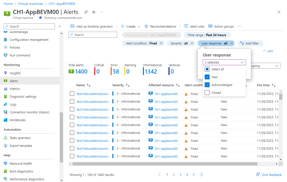 - Severity for the alert. The severity allows you to group alerts with a similar relative importance. A severity of Error is appropriate for an unresponsive virtual machine.