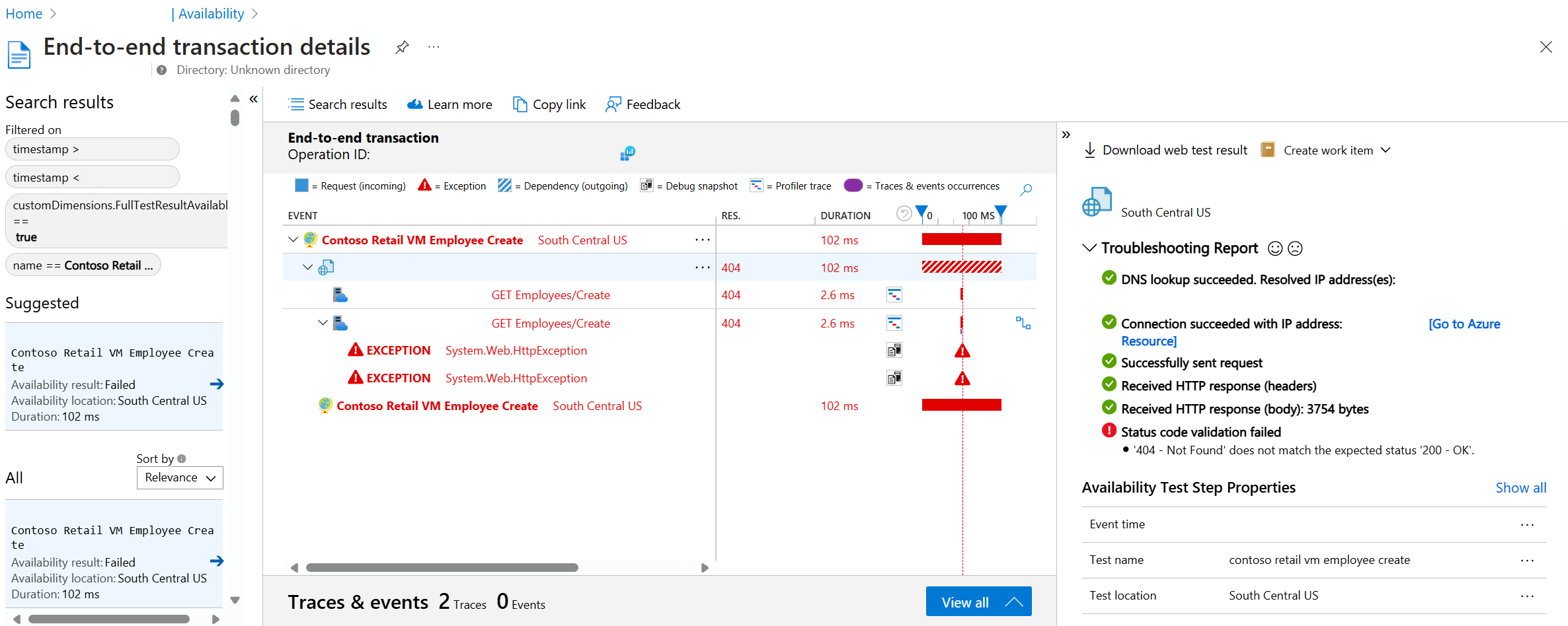 Some tests are linkable back to their Application Insights resource for further investigation. But that's only possible in the workspace-based Application Insights resource.